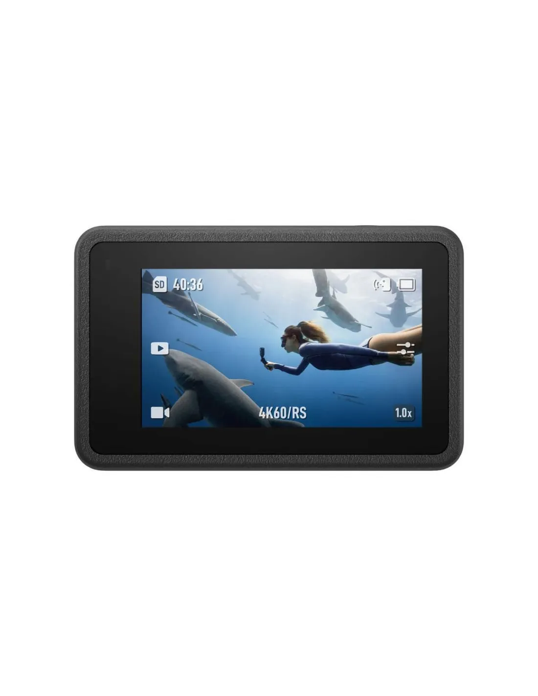 Kamera atspari vandeniui iki 18 metrų be papildomo dėklo, todėl puikiai tinka vandens sportui, kelionėms ar ekstremalioms veikloms. Dual ekranai (priekyje ir gale) leidžia patogiai valdyti filmavimą tiek vlogams, tiek POV turiniui.