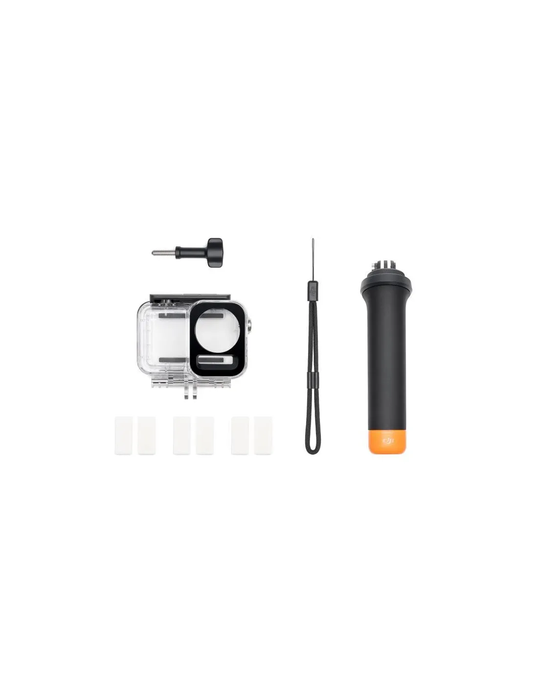 - DJI FLOATING HANDLE 1, OSMO LOCKING SCREW 1, OSMO ACTION 60M WATERPROOF CASE 1, ANTI-FOG INSERTS 3