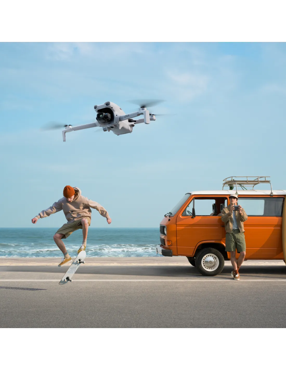 DJI RC-N3 valdymo pultas naudoja jūsų išmanųjį telefoną kaip ekraną, todėl sprendimas išlieka lengvas, kompaktiškas ir prieinamas.