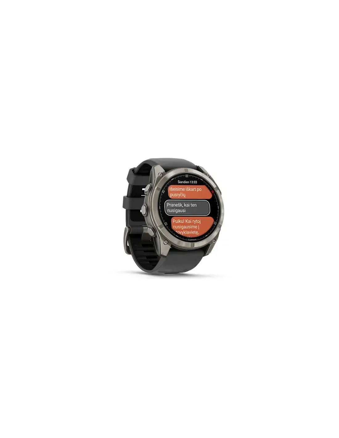 „fēnix® 8 Pro“ – tai mūsų pirmasis išmanusis laikrodis su „inReach“ technologija1, suteikiantis palydovinį ir LTE ryšį, kuris leidžiantis į nuotykius padės jaustis užtikrinčiau. Prireikė pagalbos? Inicijuokite interaktyvų SOS pranešimą, jei prireikia skubios pagalbos iš visą parą veikiančio „Garmin Response“ koordinavimo centro.